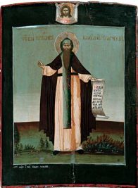 Преподобный Дорофей Югский в молении перед образом Богоматери Югской