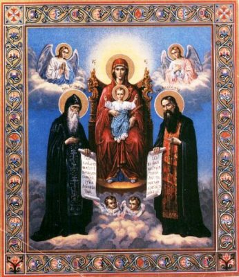Печерская икона Божией Матери с предстоящими Антонием и Феодосием