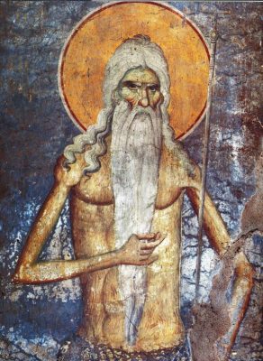 Однажды охотник, гнавшийся за оленем, увидел нагого человека, обросшего волосами и препоясанного по чреслам листвой. Он испугался и бросился бежать. Преподобный Петр остановил его и рассказал о своей жизни. Охотник просил позволения остаться с ним, но святой отослал его домой. Преподобный Петр дал охотнику год для самоиспытания и запретил рассказывать о встрече с ним.