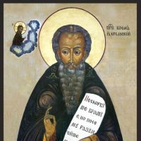 Преподобный Косма Яхромский был слугой одного боярина и во время продолжительной болезни своего господина утешал его чтением книг. Как-то, переезжая из города в город, они остановились на реке Яхроме. Здесь преподобному Косме явилась на дереве икона Успения Пресвятой Богородицы, от которой он слышал голос, повелевавший быть ему иноком и устроить монастырь. Его больной господин тогда же получил от иконы исцеление, а преподобный Косма отправился в Киев и в Печерском монастыре принял постриг. Потом с явленной иконой Богоматери он, по внушению свыше, снова отправился на Яхрому и в 40 верстах от г. Владимира, при пособии добрых христиан, построил храм в честь Успения Пресвятой Богородицы. К преподобному стала собираться братия, и образовался монастырь. Преподобный Косма был избран игуменом. Слава о иноческих подвигах святого доходила в те времена даже до великого князя. Преподобный Косма скончался в глубокой старости 18 февраля 1492 г. и был погребен в основанной им обители. Память ему также творилась 14 октября, в день празднования Божией Матери ради Ее иконы Яхромской.
