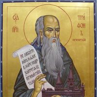 В миру его звали Митрофан, родился в 1495 г. в Новгородской губернии. С ранних лет преподобный Трифон был «изряден постник, кроток, милостив». Услышав однажды голос, повелевавший ему идти «в землю пустынную, жаждущую, где никто еще не ходил», Трифон отравляется с проповедью Христа к язычникам-лопарям, о жизни которых знал из рассказов рыбопромышленников.