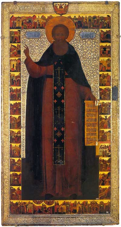 Главная > Иконы > Государственный Русский музей, Россия, Санкт-Петербург > Александр Свирский, с житием в 39 клеймах