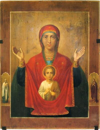 Богоматерь «Умягчение злых сердец» с избранными святыми на полях