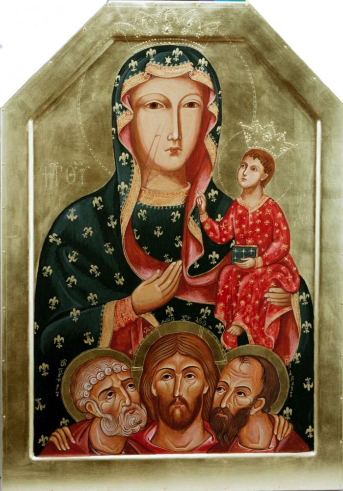 Иконописная мастерская “НЕБО НА ЗЕМЛЕ” Богоматерь Ченстоховская Доска (липа). Паволока, левкас, яичная темпера. Лепнина. Золочение. Чеканка. 50×70