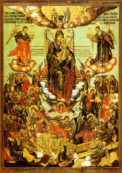 Богоматерь на престоле со святыми Григорием Богословом, Никитой, Маврой и Евпраксией