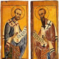 Богоматерь на троне, Христос на троне, двенадцать апостолов в медальонах