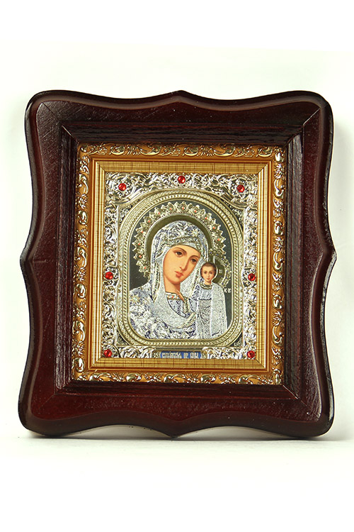 Икона образ Божьей Матери«Казанская» в деревянном киоте с камнями