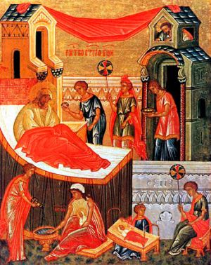 Чудотворная Сямская икона Рождества Богородицы была главной святыней Сямского Богородице-Рождественского монастыря под Вологдой, закрытого в 1924 году. В 1524 году крестьянину Ивану Родионову из села Отводное Сямской волости (недалеко от Кубенского озера), несколько лет лежавшему в параличе, явилась Пресвятая Богородица и велела объявить местным жителям Её волю – построить монастырь во имя Её Рождества у реки Крутец, что на Долгой поляне. Крестьянин тут же выздоровел и сделал то, что велела ему Пресвятая Дева. В этом же году был построен деревянный монастырь с церковью Рождества Богородицы. Сямская икона прославилась многочисленными чудесами. В 1542 году монастырь сгорел до основания, но икона уцелела. В конце XVIII века в обители построили каменный храм. Монастырь закрыли и разорили после революции, чудотворная икона пропала и до настоящего времени не обнаружена.