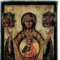 Богоматерь Гора Нерукосечная, с припадающими святыми Никитой и Евпраксией