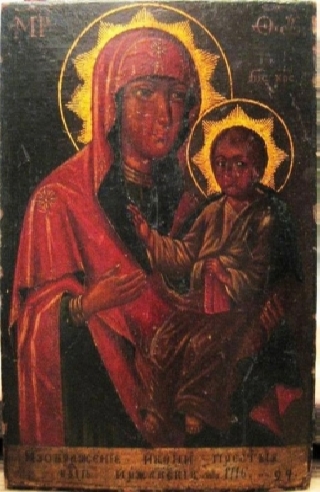 Названа икона так по месту своего пребывания в местечке Ржавец, или Иржавец, Полтавской губернии, куда она была перенесена запорожцами. Написан образ в 1572 году.
