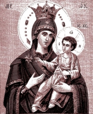 Находится икона в Ватопедском монастыре на Афоне. Пожертвована монастырю императором Василием Великим (379 – 395 гг.), который считался ктитором – устроителем и украсителем монастыря, отсюда и название иконы. Прославился образ следующим образом. Когда в 862 году грабители-арабы напали на Святую Гору Афон и были уже недалеко от Ватопеда, экклезиарх монастыря (человек, отвечающий за порядок богослужения) спрятал Ктиторскую икону Пресвятой Богородицы вместе с крестом в колодезе под помостом храма, за мраморною плитою, зажегши перед святынею свечу. Сам же он был схвачен варварами и взят в плен. Когда же через 40 лет экклезиарх получил свободу и возвратился в полуразрушенную обитель, то по его указанию были обретены крест и икона, причём с горящею перед ними свечою. Икона эта стоит в алтаре соборного храма, почему называется ещё «Алтарницей». День празднования: 3 февраля (21 января по старому стилю).