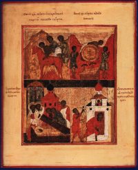 Четыре клейма с изображением жития святого Георгия. 16 век