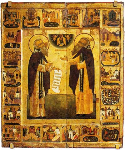 Главная > Иконы > Государственный Русский музей, Россия, Санкт-Петербург > Преподобные Зосима и Савватий Соловецкие, с житием в 22 клеймах