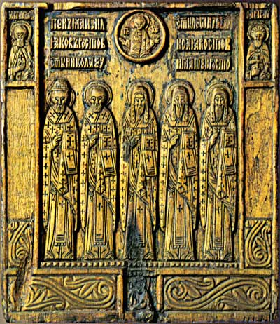 Свв. Иоанн Златоуст, Николай Мирликийский и Игнатий Богоносец