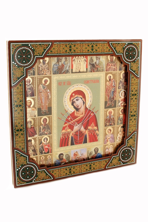 Семистрельная с предстоящими икона Божией Матери под стеклом (26х26 см)
