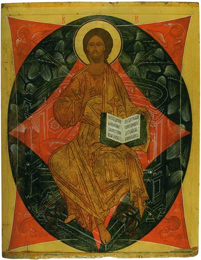 Спас на престоле с припадающими Сергием Радонежским и Макарием Желтоводским и Унженским