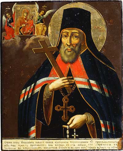 Светильниче Церкве пресветлый, / озаривый лучами доброт твоих страну сию, / и исцеленьми многими притекающих к тебе с верою / Бога прославивый, / молим тя, святителю Иннокентие, / ограждай молитвами твоими град сей / от всех бед и печали