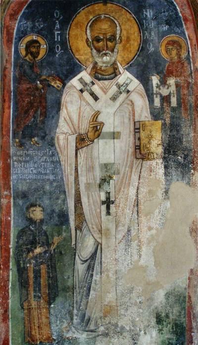 Святитель Николай Мирликийский, преподобные Антоний Великий и Афанасий Афонский