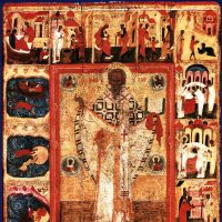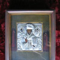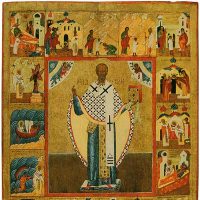 Краткое описание: в среднике – поясное фронтальное изображение святого Николая с Евангелием в руке, вверху – полуфигуры Христа и Богоматери. Вокруг – 12 клейм со сценами жития: 1) Рождество Николы; 2) Исцеление сухорукой жены; 3) Приведение во учение; 4) Поставление в диаконы; 5) Поставление в иереи; 6) Поставление в епископы; 7) Возвращение Василия Агрикова сына родителям; 8) Из гнание беса из кладезя. Посечение древа; 9) Спасение Димитрия со дна моря; 10) Никола покупает ковёр у старца; 11) Никола отдаёт ковёр жене старца; 12) Перенесение мощей святого Николая.