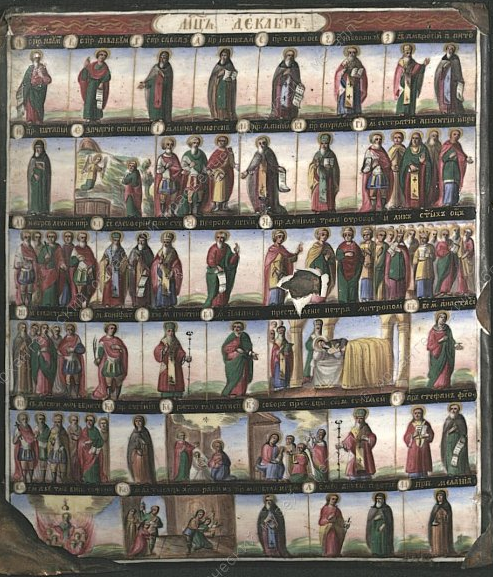 Святцы (декабрь). Вторая половина XIX в. Ростов.