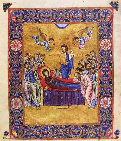 Богоматерь Благодатное небо с предстоящими Георгием Хозевитом и Андреем Критским