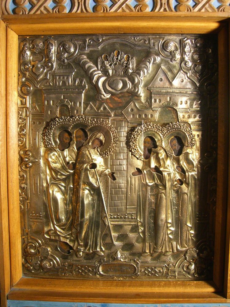 Прор. Анна, свт. Николай, св.князь Владимир, преп.Мария, на полях: мч.Иоанн воин, мч.Димитрий Солунский (XVIII век)