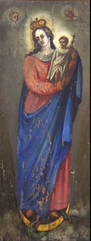Аллегорический тип Богоматери в облике Апокалиптической жены возник в Германии в XV веке. В этой иконографии Богородица представлена в рост, с Младенцем на руках. Её ноги опираются на лунный серп, от фигуры исходят золотые лучи, образующие ореол сияния (мандорлу), на голове Богородицы (в большинстве изображений и на голове Младенца) корона. Образ является прямой иллюстрацией слов из Апокалипсиса: «И явилось на небе великое знамение: жена, облеченная в солнце; под ногами ее луна, и на главе ее венец из двенадцати звезд… И родила она младенца мужского пола, которому надлежит пасти все народы жезлом железным» (0тк. 12:1,5). Облеченной в солнце называется Божия Матерь в акафисте Успению Пресвятой Богородице (кондак 1): «Радуйся, облеченная в солнце, сияющая благодатию и славою всей вселенней». Подобные изображения известны в гравюрах, в скульптуре, в миниатюрах и на витражных стёклах начиная с XV века. Различные варианты данного иконографического типа получили большое распространение в польском искусстве, откуда через Украину, Белоруссию и Литву пришли в Россию. К этой иконографии принадлежит образ Божией Матери «Благодатное Небо». В современной иконографии образы «Жена, облеченная в Солнце» и «Благодатное Небо» часто объединяют.