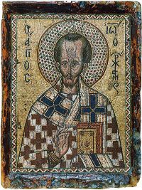 Богоматерь на троне, Христос на троне, двенадцать апостолов в медальонах
