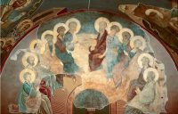 Престол уготованный, Богоматерь, Иоанн Предтеча, Адам, Ева, ангелы, апостолы Петр и Павел