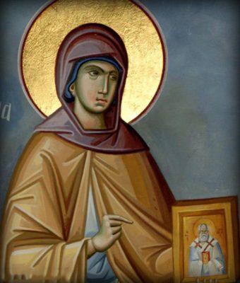 Если одни из жен отличаются бережливостью, а другие благочестием, ибо трудно совмещать оба качества, то она превосходила всех тем и другим, и в каждом достигла верха совершенства, и оба умела соединить в одной себе. Одно не терпело у ней ущерба от другого, но одно другим взаимно поддерживалось. Укрылось ли от нее какое время и место молитвы? Об этом у нее ежедневно была самая первая мысль. Лучше же сказать, кто, приступая к молитве, имел столько упования получить просимое? Но и всего удивительнее то, что она, хотя и сильно поражалась горестями, даже чужими, однако же никогда не предавалась плотскому плачу до того, чтобы скорбный глас исторгся прежде благодарения, или слеза упала на вежды, таинственно запечатленные, или при наступлении светлого праздника оставалась на ней печальная одежда, хотя ее постигали неоднократно многие скорби. Ибо душе Боголюбивой свойственно подчинять Божественному все человеческое. Умолчу о делах еще более сокровенных, которым свидетель один Бог и о которых знали разве верные рабыни, бывшие в том ее поверенными”.