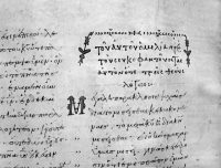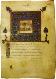 Заставка с изображением евангелиста Матфея и фигурный инициал с изображением царицы Елены