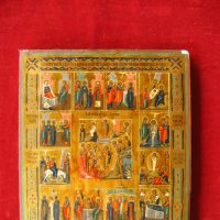 Прор. Анна, свт. Николай, св.князь Владимир, преп.Мария, на полях: мч.Иоанн воин, мч.Димитрий Солунский (XVIII век)