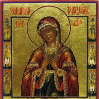 Богоматерь «Умягчение злых сердец» с избранными святыми на полях