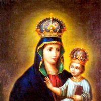 Краткое описание: Богоматерь изображена сидящей на престоле и под держивающей обеими руками Младенца, полусидящего на её правой руке. В руке Христа – закрытое Евангелие. На головах Богоматери и Христа – царские короны. На верхнем и боковых полях – оклад из серебряных чеканных пластин с густым «травным» орнаментом.