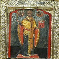 Дерево; левкас; темпера; серебро; стекло; стекло; ткани, тиснение; гравировка; просечка. 31,6×27, общий вес иконы-1253,1 г. Соловецкий музей-заповедник. КП-1766