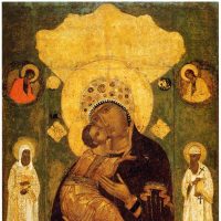 Богоматерь Гора Нерукосечная, с припадающими святыми Никитой и Евпраксией