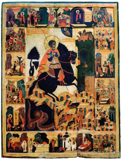 Чудо Георгия о змие, с житием в 18 клеймах