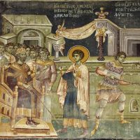 Св. Георгий перед царем. Прободение св. Георгия копьем
