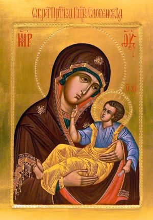 Словенская (Словинская) икона — чудотворная икона, издавна почитаемая на костромской земле. Парализованному крестьянину Титу Гаврилову во сне явилась Пресвятая Дева. Богородица пообещала больному исцеление и велела отыскать Ее чудотворную икону в старой заброшенной церкви на берегу речки Словинки. Встав утром совершенно здоровым, Тит отправился на указанное место и обнаружил там полуразрушенный храм, в котором уцелела одна-единственная икона. Через несколько лет на месте обретения чудотворного образа возник монастырь, получивший, как и икона, название Словинский. При монастыре возникла слобода. Во время реформ Екатерины II в 1764 году монастырь был закрыт, слобода стала именоваться селом Словинка, а храм, где пребывала чтимая икона, стал сельской церковью. В 1806 году вместо старой деревянной церкви в Словинке была построена каменная, которая уцелела до нашего времени. Там чудотворная икона находится и в настоящее время. В 2003 году на месте обретения иконы была восстановлена часовня, существовавшая до революции, и поставлен колодец с освященной водой.