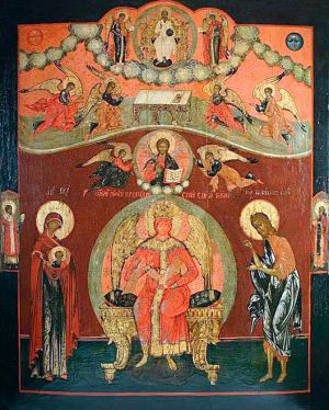 Новгородская икона «София – Премудрость Божия» – древняя чудотворная икона из новгородского Софийского собора. Образ Премудрости Божией встречается в Ветхом Завете и является символическим обозначением силы Божией, действующей в мире. На иконе Премудрость (по-гречески София) изображена в виде огненного ангела в царском одеянии, восседающего на троне. Фигура и трон окружены сияющим овальным ореолом — мандорлой. По сторонам от трона стоят склоненные в молитве Богоматерь с изображением Младенца-Христа на груди и Иоанн Предтеча. Выше, над Премудростью, располагается изображение Спасителя, на самом верху – Евангелие на престоле, по бокам от него — коленопреклоненные ангелы. Икона была созданадля новгородского Софийского собора и представляет собой список с древней византийской иконы Премудрости Божией, принадлежавшей императору Юстиниану. Новгородская икона известнамногочисленными чудесами, самое первое из которых отражено в Новгородской летописи за1542 год: по молитве перед образом исцелилась женщина, страдавшая болезнью глаз. Празднование этой иконе установлено в праздник Успения Пресвятой Богородицы.