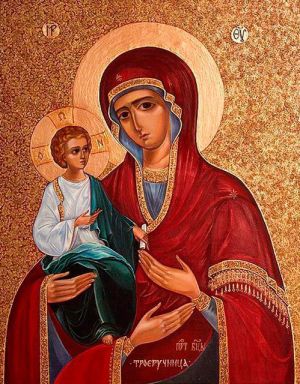 Появление этой иконы связано с историей жизни святого Иоанна Дамаскина. Во времена, когда в Византийской империи распространилось движение против почитания святых икон (иконоборчество), святой Иоанн написал три трактата в защиту иконопочитания и направил их императору Льву Исаврянину. Император захотел расправиться с богословом, но святой Иоанн был подданным другого государства — Арабского халифата — и служил министром в Дамаске. Тогда император приказал написать донос халифу на Иоанна о том, что тот якобы готовит заговор против правителя. После доноса Иоанну Дамаскину отрубили правую руку. Он стал молиться перед иконой Богородицы и однажды утром обнаружил, что отсеченная рука чудом приросла обратно. В память о произошедшем чуде святой изготовил из серебра изображение руки и прикрепил его к серебряному окладу. Эта икона хранится сейчас в афонском монастыре Хиландар. Когда с этой иконы делали списки, третья рука рисовалась уже как часть образа. В России есть несколько чудотворных списков с «Троеручицы». Один из них находится в храме Успения Пресвятой Богородицы в Гончарах (Болгарское подворье).