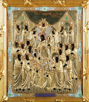 Богоматерь Донская с предстоящими Антонием Великим и Антонием Печерским в окружении сюжетов из Киево-Печерского патерика