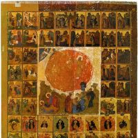 Масло; левкас; темпера, смешанная техника. Способ производства: кустарное производство. 31,2×26,8×3. Соловецкий музей-заповедник. КП-53