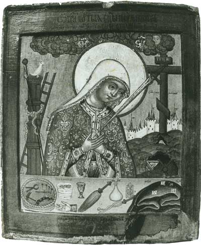 Богоматерь на троне, Христос на троне, двенадцать апостолов в медальонах