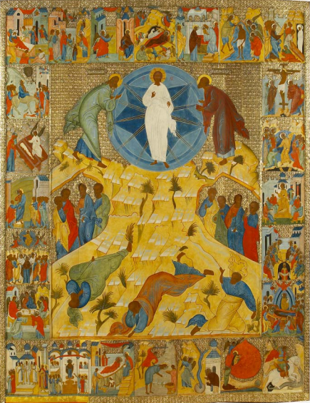 Легенда: список с иконы «Преображение, с праздниками» первой половины XVI в. из Покровского монастыря в Суздале (собрание ГРМ, инв. № ДРЖ 1879).