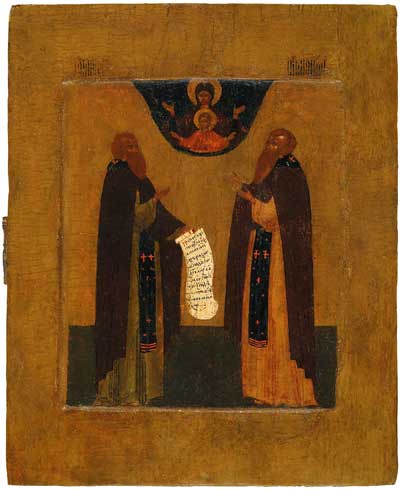 Главная > Иконы > Россия, Ярославль, Ярославский художественный музей > Преподобные Зосима и Савватий Соловецкие