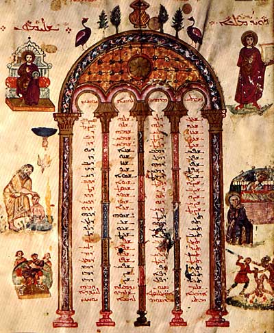 Таблица канонов. Соломон. Давид. Рождество Христово. Избиение младенцев. Крещение