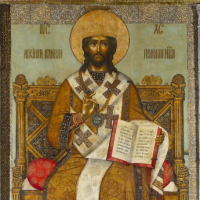 Христос Великий Архиерей, с припадающими преподобными Сергием Радонежским и Евфимием Суздальским