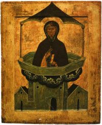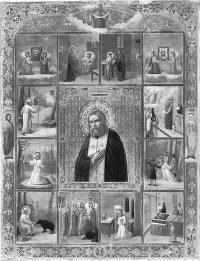Святые князья Александр Невский и Феодор, с видом Александро-Невского монастыря