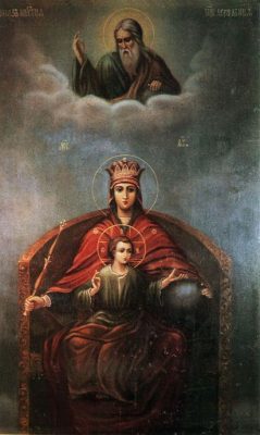 О, Державная Владычице Пресвятая Богородице, на объятиях Своих держащая Содержащаго дланию всю вселенную, Царя Небеснаго!